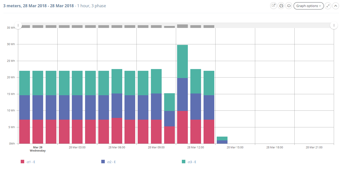 If you are setting up multiple single phases to one Eniscope Input (which can support 3 CTs), then when you set up the data view, you'll need to add a separate dataview for each phase in turn, by selecting a different CT.