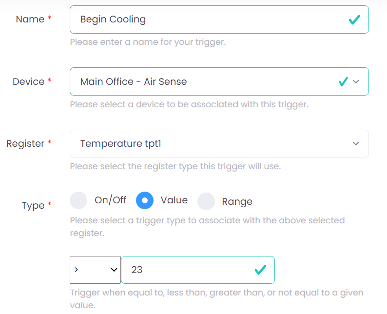 - Two Triggers: One to Detect when the Temperature is greater than 23 degrees & One to Detect when the Temperature is less than 18 degrees