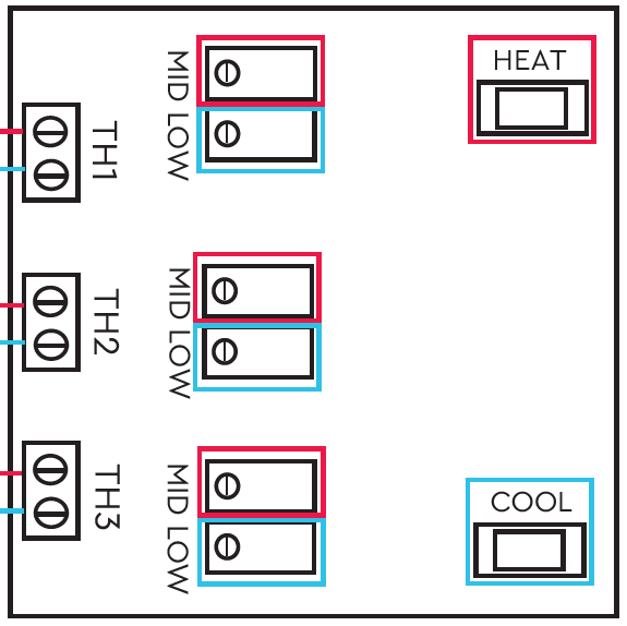 - The Air Ambient is installed to have heating be triggered by the top connection of the two Thermistor Inputs
