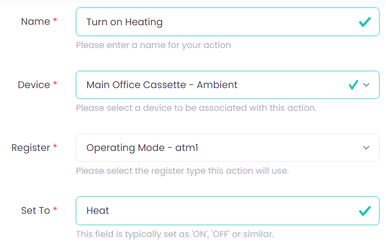- Two Actions: One to Turn the Unit to Heat & One to Turn the Unit Off