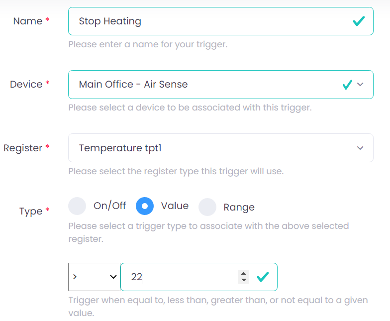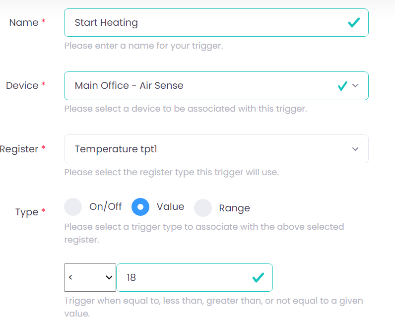 - Two Triggers: One to Detect when the Temperature is less than 18 degrees & One to Detect when the Temperature is greater than 22 degrees