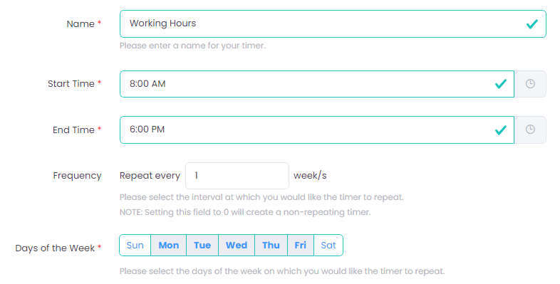 The Timer will be setup as such: